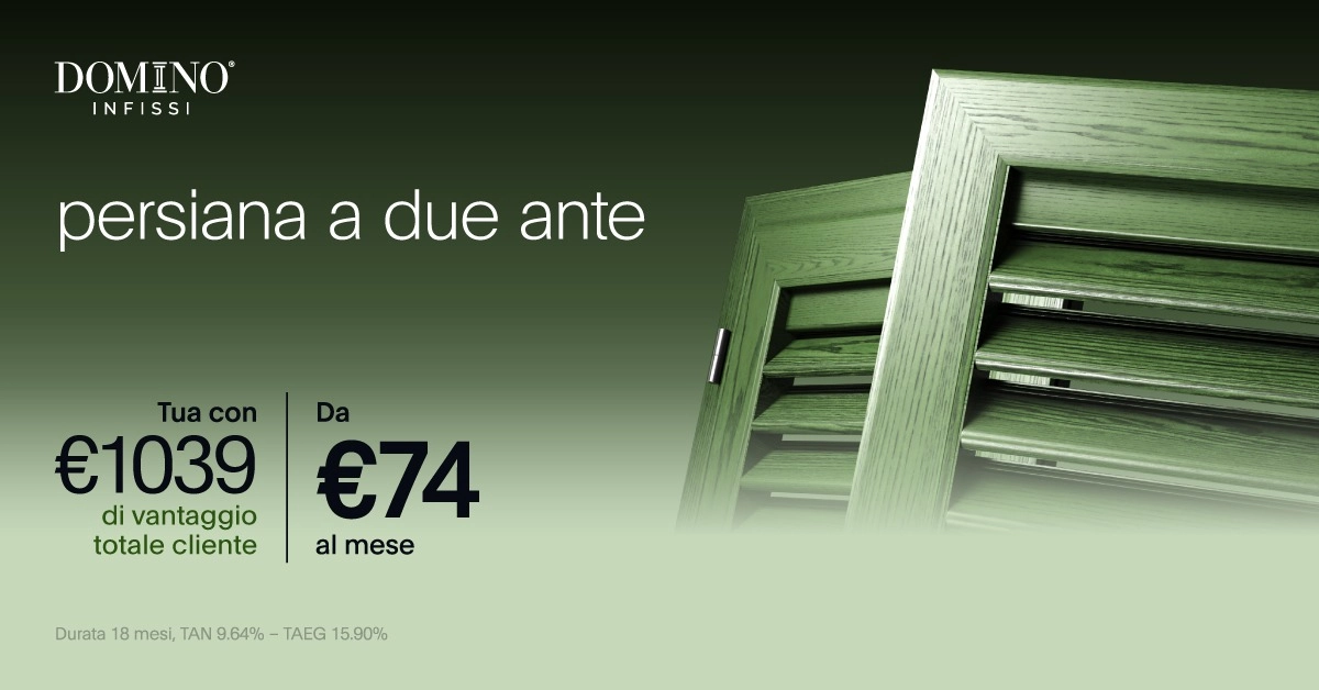 A tempo limitato, le Persiane in Alluminio Windsor possono essere tue da soli 74€ al mese, con 1.039€ di vantaggio totale cliente!